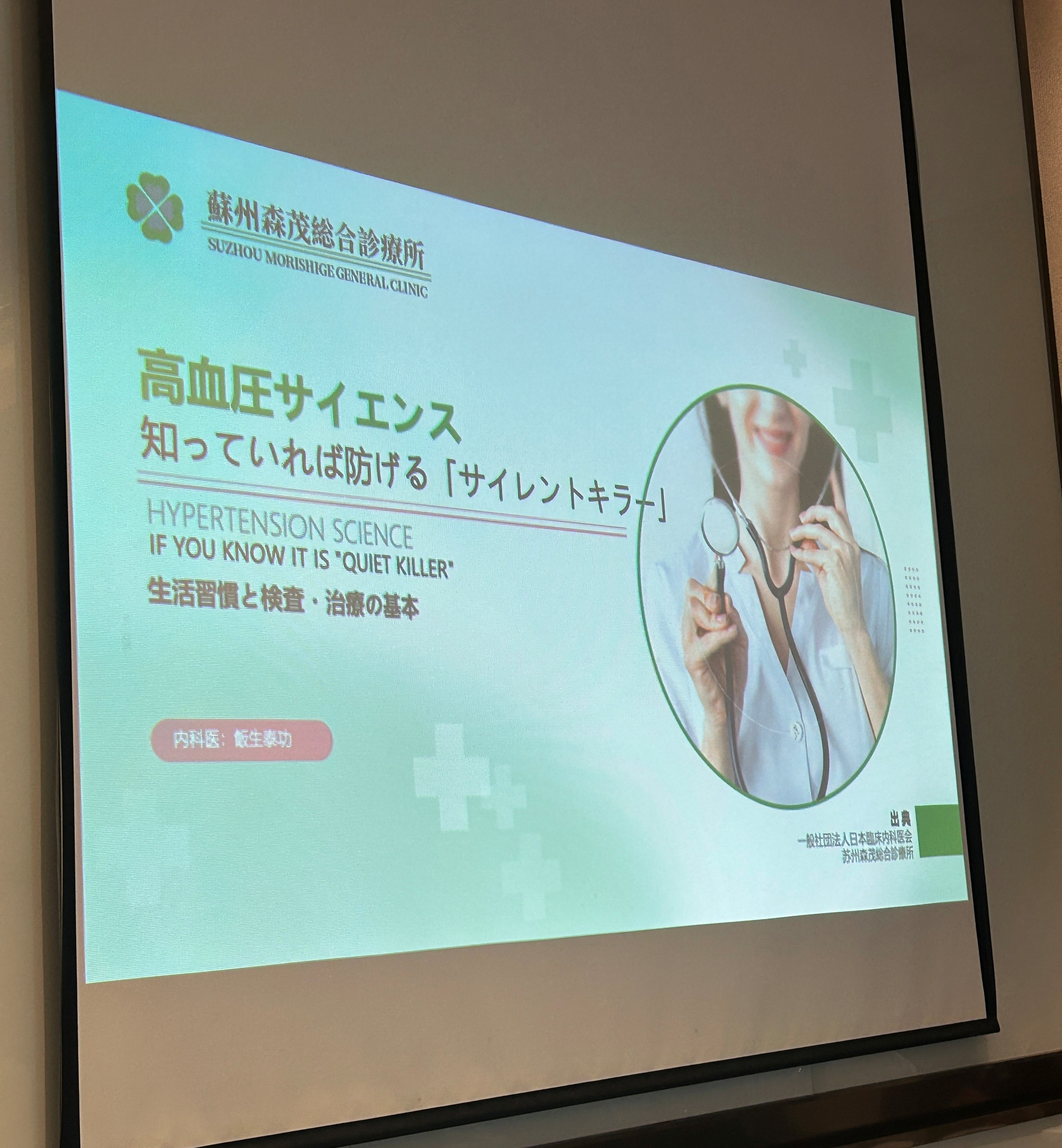 2025年12月19日昆山日商倶楽部主催、蘇州森茂診療所飯生泰功医師(内科)•唐薇 医師(心療内科)を講師にお招きし、【からだと心の元気を保つために】セミナーが開催されました。