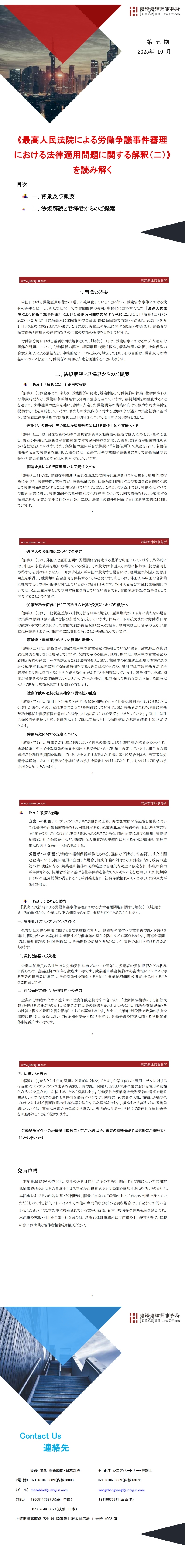 《最高人民法院による労働争議事件審理 における法律適用問題に関する解釈(二)》 を読み解く