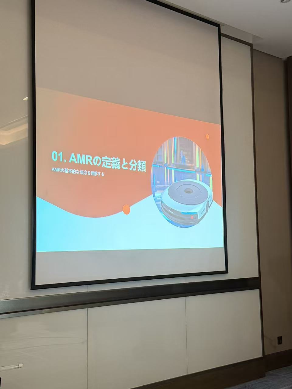 後半は天津太維信息科技有限公司の総経理・李牧原様、経理・宋秀紅様を講師にお迎えし、「AMR(自律走行搬送ロボット)を活用した場内の物流自動化と省人化の事例紹介」をテーマに行われました。